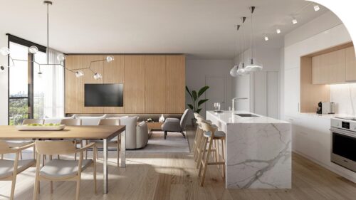 The interior of each ANX suite provides the perfect starting point of minimal design, allowing you to maximize your personal aesthetic within. Striking open concept layouts and floor-to-ceiling windows create an airy, luminous feel throughout every room. The rich blend of features and finishes, carefully curated down to the smallest detail, ensures each sleek, sophisticated space remains warm and inviting.