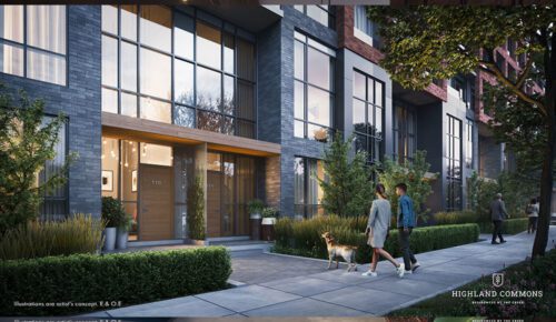 Our design for Highland Commons was aimed at reinforcing the village atmosphere of Highland Creek through the creation of a modern, warm take on a “high street”. By providing a variety of façades to reduce the scale of the buildings at street level, the pedestrian experience along Military Trail is enriched. In addition, opening the rear of the buildings to the natural tranquillity of the Highland Creek ravine adds a new and unique aspect.