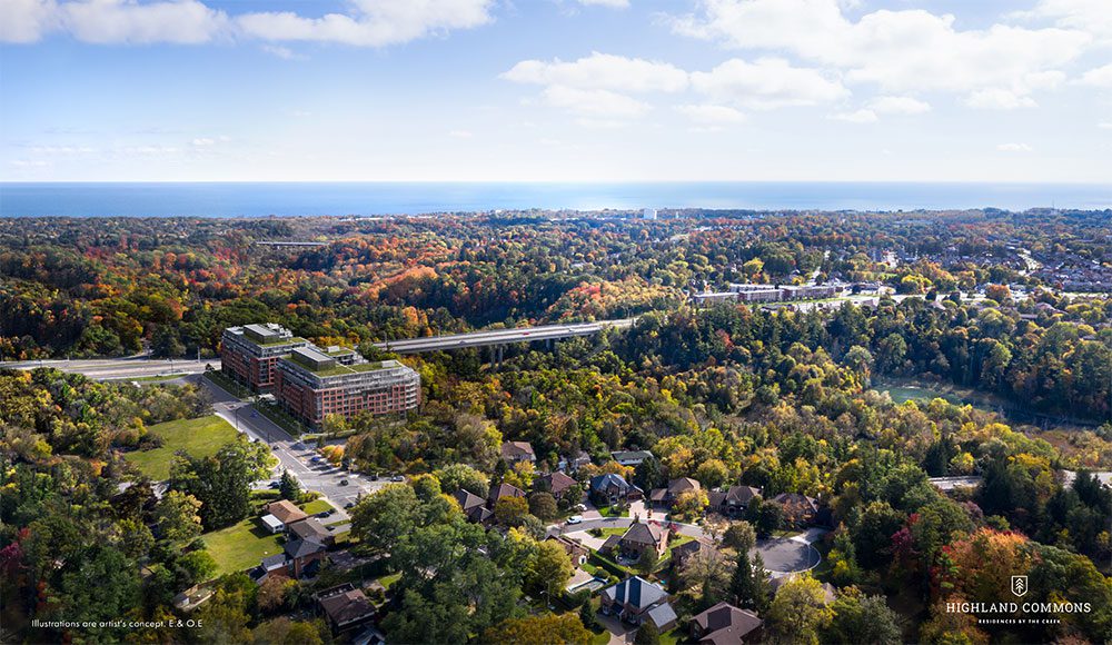 Our design for Highland Commons was aimed at reinforcing the village atmosphere of Highland Creek through the creation of a modern, warm take on a “high street”. By providing a variety of façades to reduce the scale of the buildings at street level, the pedestrian experience along Military Trail is enriched. In addition, opening the rear of the buildings to the natural tranquillity of the Highland Creek ravine adds a new and unique aspect.