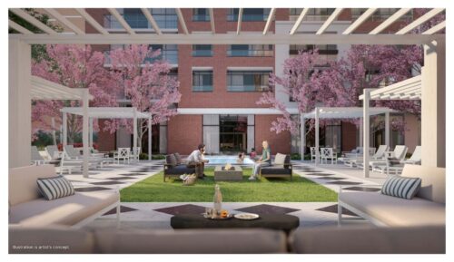 The beautiful landscaped green space inspired by English gardens will invite you to sit a while among fragrant gardens, and when you’re ready to leave, you are only moments from the city with the convenience of the TTC and the proposed future Eglinton West LRT. Highways 401 & 427 are a short drive away.
