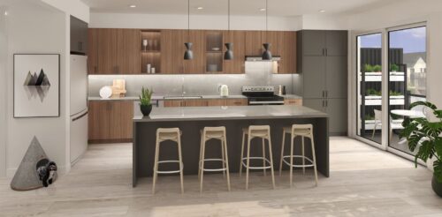 Kitchens at Sincerely, Acorn – the heart of any home – are designed with a focus on clean, simple lines, and minimalism that functions without any aesthetic sacrifice. The tonal approach to the finishes includes white, grey, and neutral colours that balance with the natural wood to add warmth and value to the overall design, while the expansive layout maximizes both the function and filtering of natural light throughout the space.