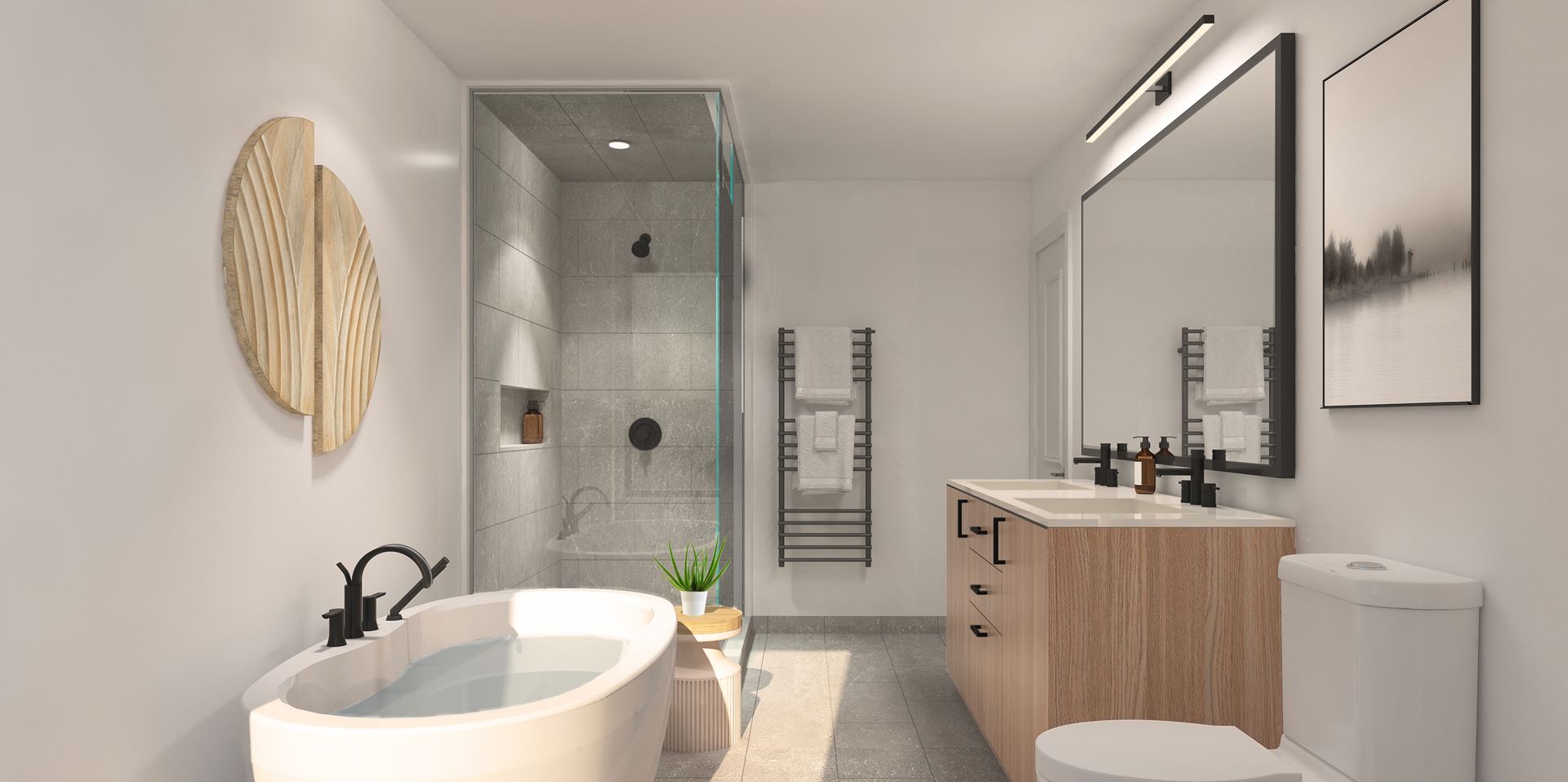 Simplistic beauty is punctuated with natural materials, neutral colours and personal accents that create and define the ensuite design. Residents will enjoy design elements such as warm textiles, decorative accents, fresh greenery, organized function, and natural light.